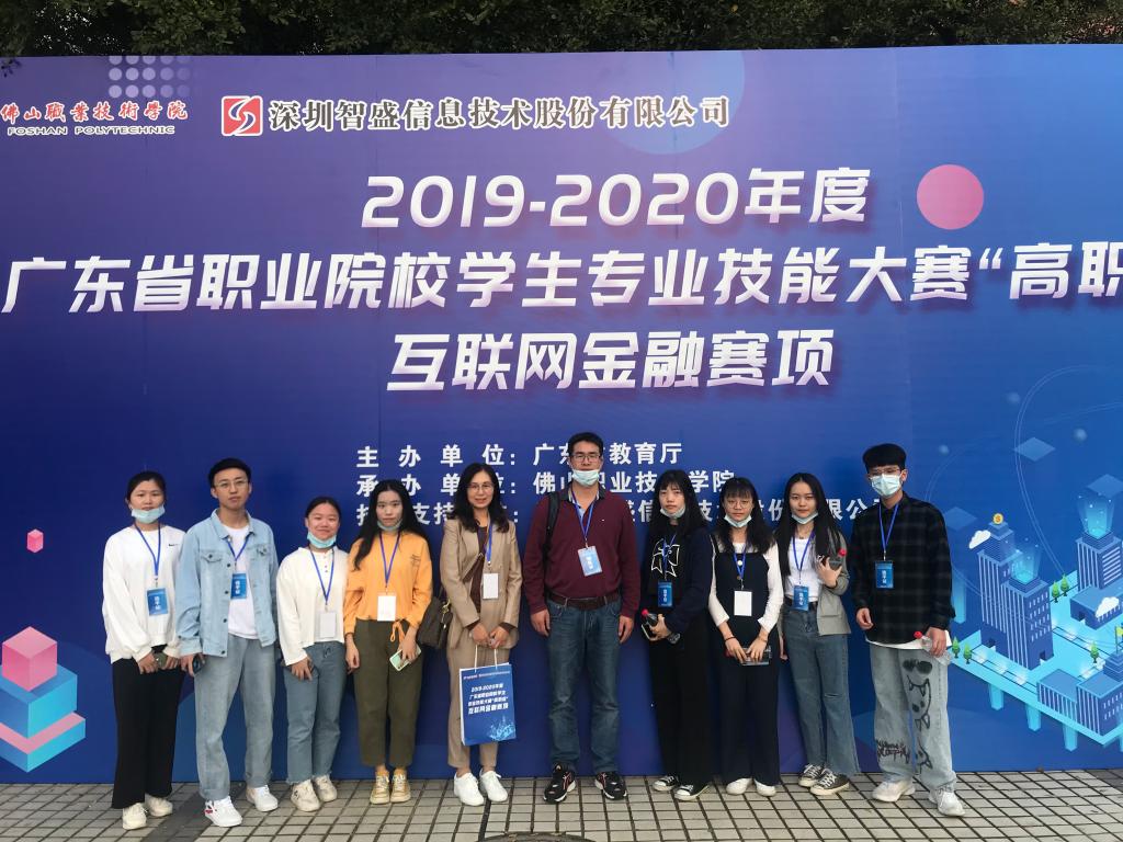 11月22日,由广东省教育厅主办的2019-2020年度广东省职业院校学生专业技能大赛“高职组”互联网金融赛项在佛山职业技术学院圆满落下帷幕。我校由财经学院朱曼玲老师、欧鑫老师指导的2支代表队伍(1队:张薇、方宇娴、张凯、陈美芳;2队:黄佩韵、黄丹琪、陈佳浩、肖敏仪)代表出赛,均喜获一等奖。
