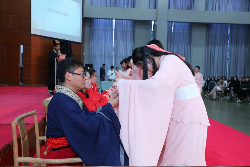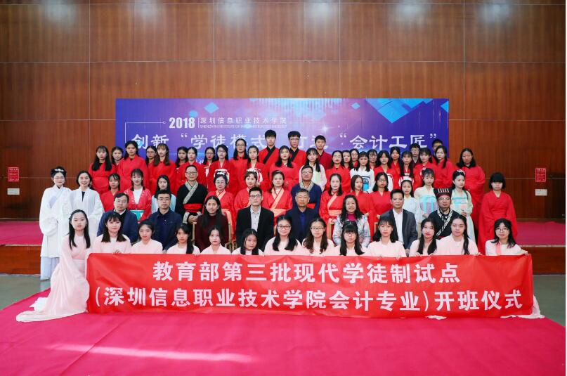12月28日,教育部第三批现代学徒制试点会计专业开班仪式在我校会议中心215举行。我校党委书记刘锦,校党委委员、副校长杨欣斌,北京东大正保科技有限公司事业部总经理张奋志及企业师傅,我校教务处负责人、财经学院全体领导班子成员,以及财经学院会计专业教师、学徒班全体同学共同参与以“创新学徒模式,打造会计工匠”为主题的开班仪式。财经学院会计专业现代学徒制团队还联手深信风雅颂诗经艺术传承基地,共同为师傅与学徒们带来一场别开生面的传统拜师礼。